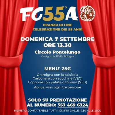Dopo la serata di sabato 6 settembre al Numa club, Domenica 7 settembre ci sarà il pranzo di celebrazione della fine festeggiamenti dei 55 anni di...