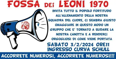 FOSSA DEI LEONI 1970INVITA TUTTO IL POPOLO FORTITUDO ALL'ALLENAMENTO DELLA NOSTRA SQUADRA PRIMA DELLA SENTITA TRASFERTA CON FORLI'SABATO 12 APRILEORE...