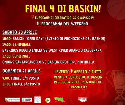 Sarà un weekend di inclusione, sport e divertimento: sabato 20 e domenica 21 aprile si svolgeranno all’Eurocamp di Cesenatico, le “Final 4”...