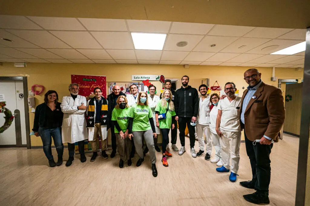 Grazie all’Associazione “Bimbo Tu” i giocatori delle V Nere, insieme al Prof. Duccio Cordelli, il Prof. Marcello Lanari, il Dott. Mino Zucchelli, il Dott. Daniele Zama e i volontari di Bimbo Tu con il Presidente Alessandro Arcidiacono, hanno visitato i reparti di neurologia pediatrica, neurochirurgia pediatrica, pediatria d’urgenza, il pronto soccorso pediatrico e la pediatria specialistica.