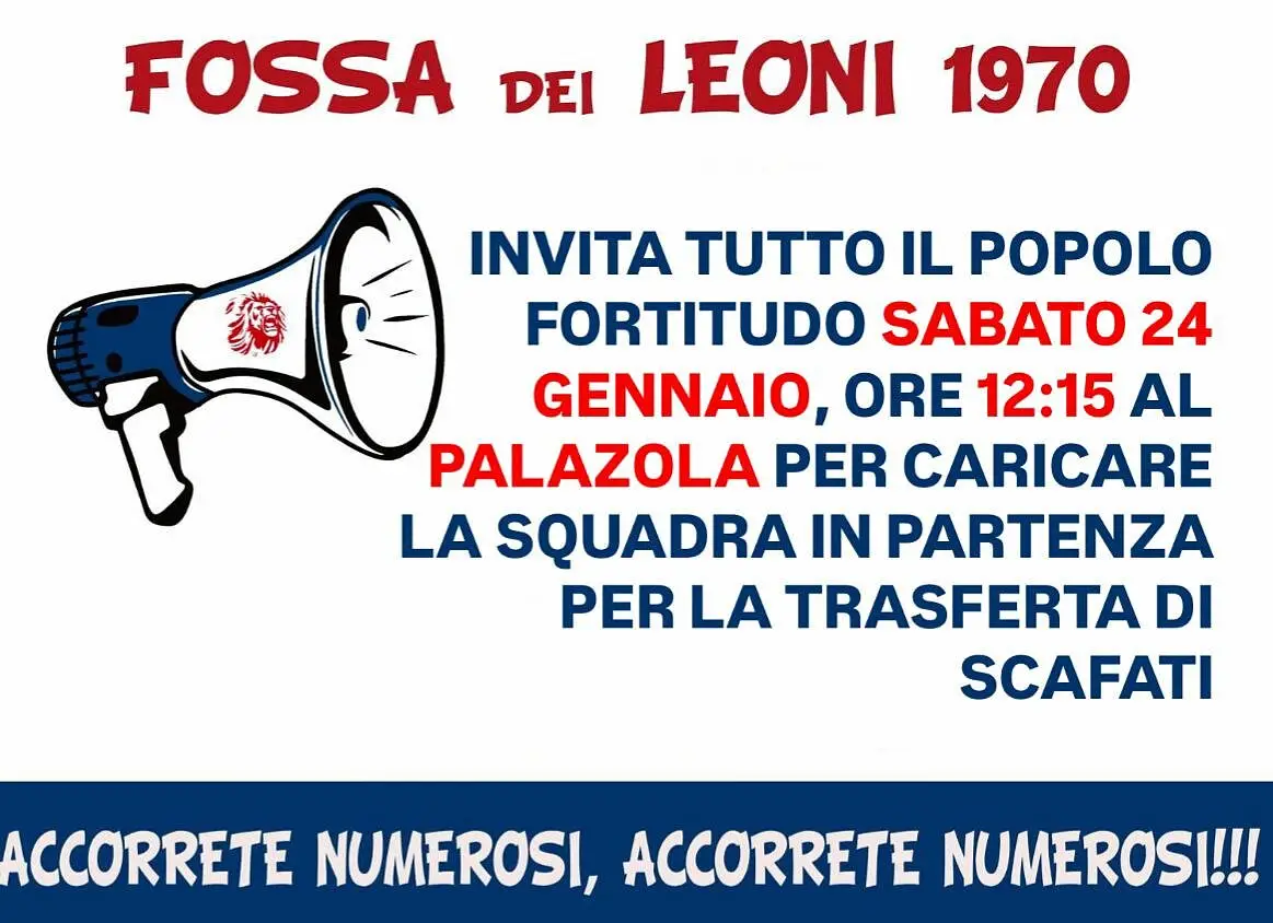 L’unica cosa che possiamo fare per stare vicini alla squadra e’ trovarci tutti domani, SABATO 24/1 alle 12:15 presso il PalaZola per salutare la nostra squadra in partenza. Invitiamo tutto il popolo Fortitudo a fare altrettanto, per dimostrare che solo provvedimenti spregevoli possono allontanarci dai nostri colori.