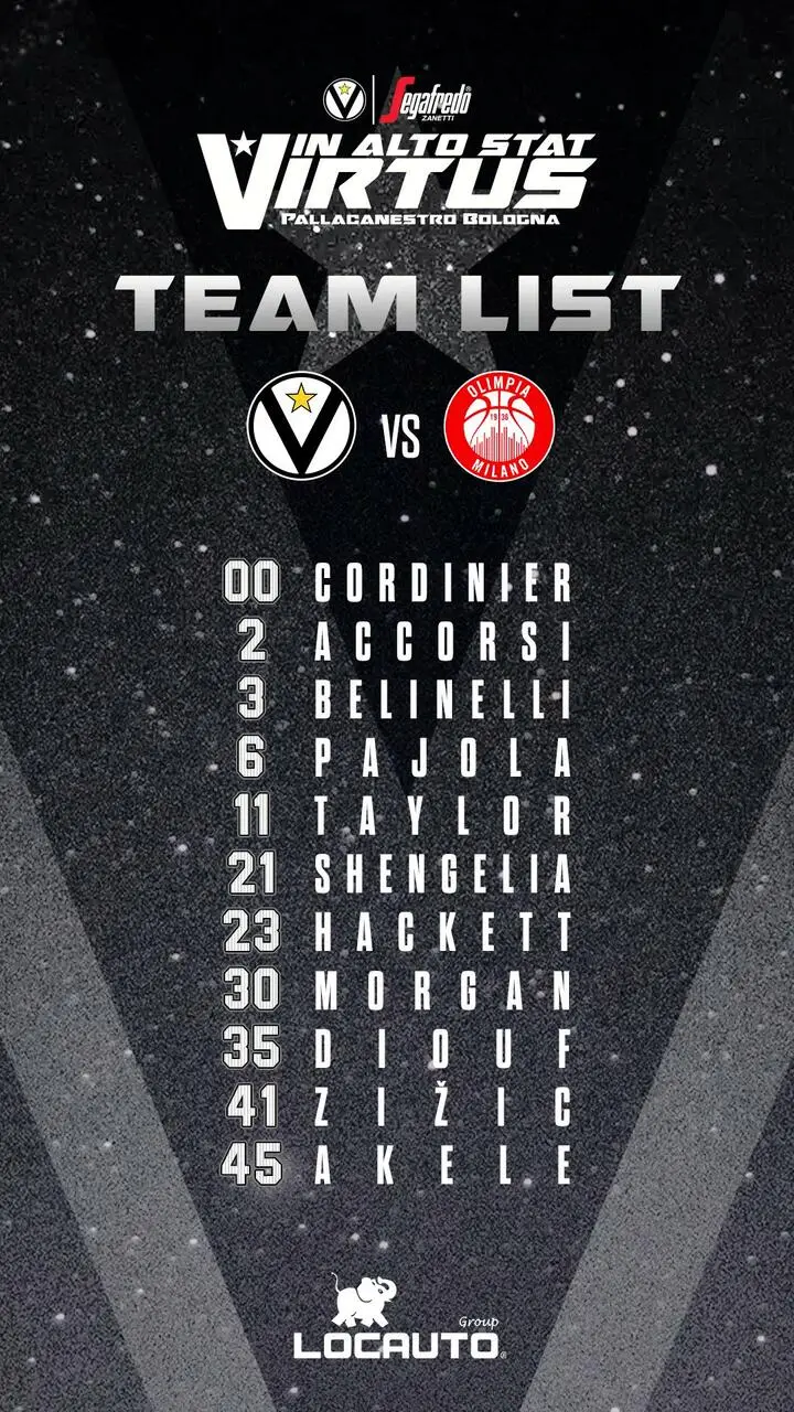 Indisponibile Achille Polonara per una riacutizzazione di sindrome influenzale. Non sarà della partita Will Clyburn per i postumi di un problema muscolare alla coscia destra accusato in gara 2 delle Semifinali Playoff