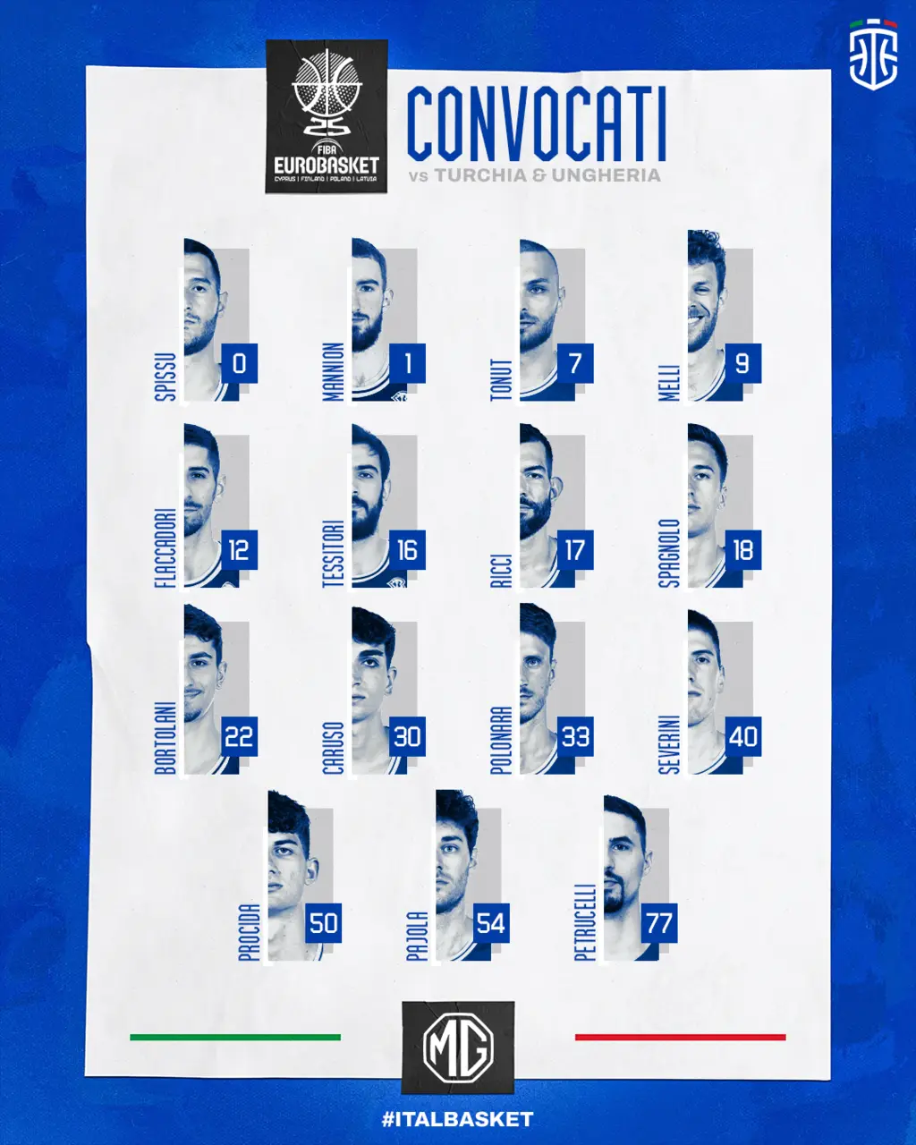 Confermati 9 Azzurri reduci dai Mondiali nelle Filippine (Spissu, Tonut, Melli, Ricci, Spagnolo, Polonara, Severini, Procida e Pajola). Rientrano in gruppo Mannion, Flaccadori, Tessitori, Bortolani, Caruso e Petrucelli.