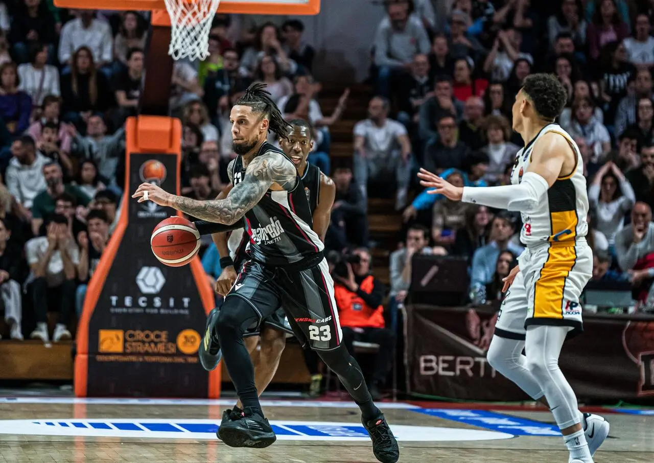 E’ ancora il centro croato a fare la voce grossa in apertura di secondo quarto, e la Segafredo fa il primo break: 18-27. Poi però si accende Colbey Ross, che praticamente da solo riporta Tortona a contatto e poi in parità: 39 pari, poi canestro di Shengelia sulla sirena e 39-41 a metà.
