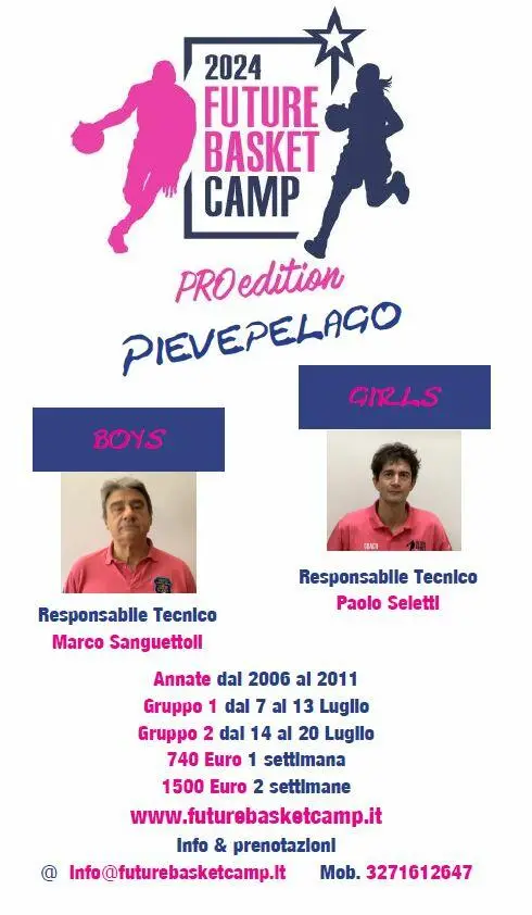 Sono ufficialmente aperte le iscrizioni al Future Basket Camp 2024, che si terrà a partire dal 7 luglio a Pievepelago (MO) nelle strutture dell'ex Centro Federale della località appenninica.