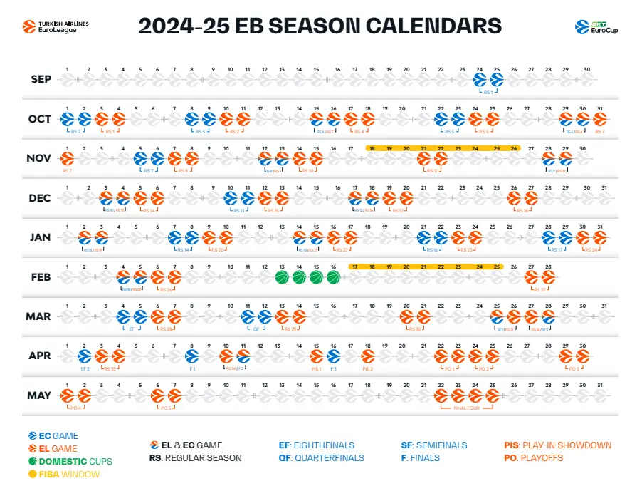 Gli azionisti hanno approvato il calendario della stagione 2024-25 per le competizioni di Euroleague Basketball. Il 3 ottobre inizierà la Turkish Airlines EuroLeague, il 24 settembre la BKT EuroCup.
