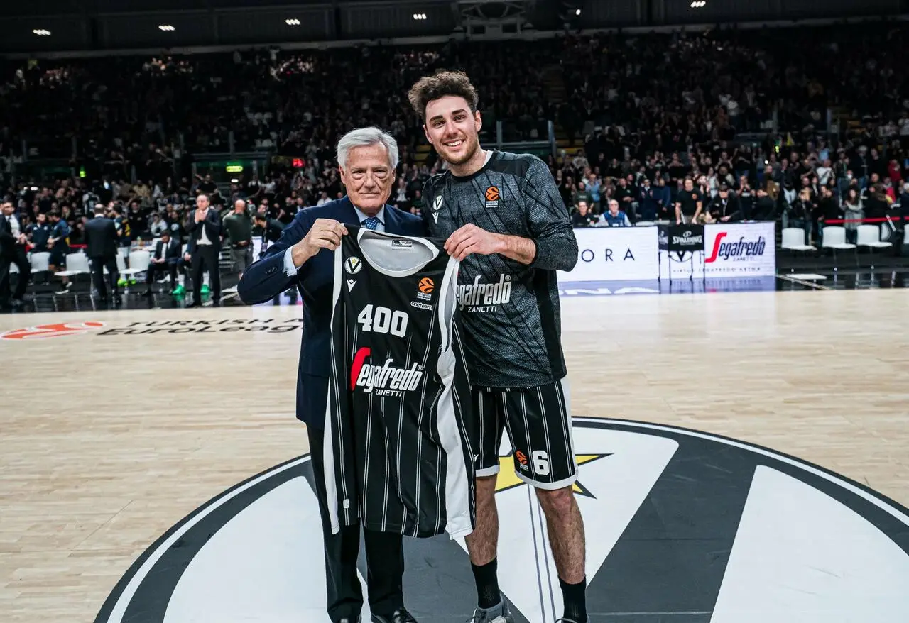 Alessandro Pajola questa sera festeggia le 400 partite in bianconero, settimo All Time nella storia della Virtus. Prima della partita il playmaker è stato premiato da patron Massimo Zanetti.