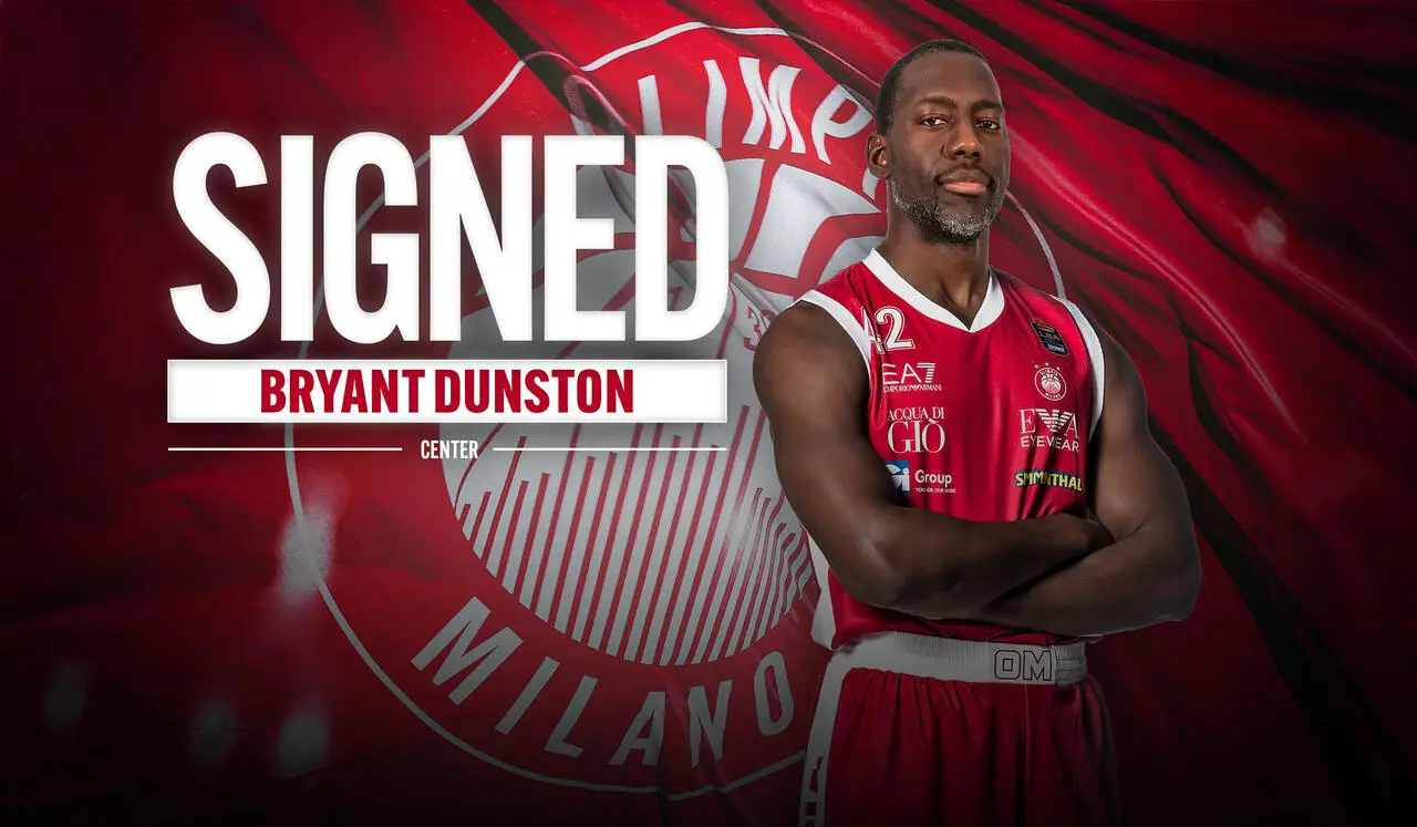 La Pallacanestro Olimpia Milano comunica di aver raggiunto un accordo per la stagione 2025/26 con Bryant Dunston, centro di 2.06, nato a New York il 28 maggio 1986 proveniente dallo Zalgiris Kaunas.