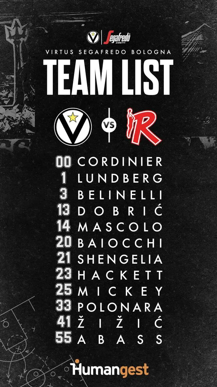 Il roster per Virtus - Reggio. Pajola out per influenza