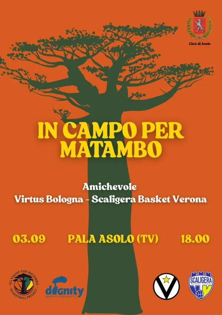 Il Pala Asolo sarà anche l’impianto che ospiterà la prima amichevole stagionale della Virtus Bologna, in programma mercoledì 03 settembre alle ore 18.00 contro la Scaligera Basket Verona. Il ricavato della vendita dei biglietti per la partita andrà in beneficienza al progetto “DIGNITY NO PROFIT PEOPLE” che sostiene l’alfabetizzazione dei bambini, i diritti dell’infanzia e dell’adolescenza a Matambo, in Mozambico, dove è in costruzione un campo di basket per i bambini e i giovani del villaggio per promuovere, attraverso sport e giochi, percorsi di crescita, inclusione ed educazione per tutti.