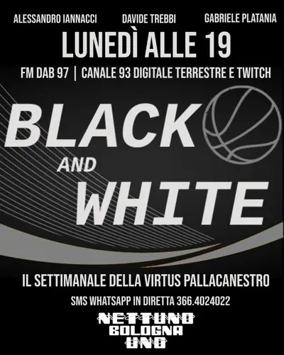 OGGI BLACK AND WHITE ALLE 19 SU RADIO NETTUNO BOLOGNA UNOOgni lunedi Black and White su Radio Nettuno Bologna Uno dalle 19 alle 20, il settimanale...