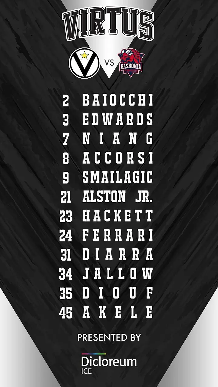 Virtus in campo così alle 20.30 contro il Baskonia. Indisponibile Matt Morgan per una...