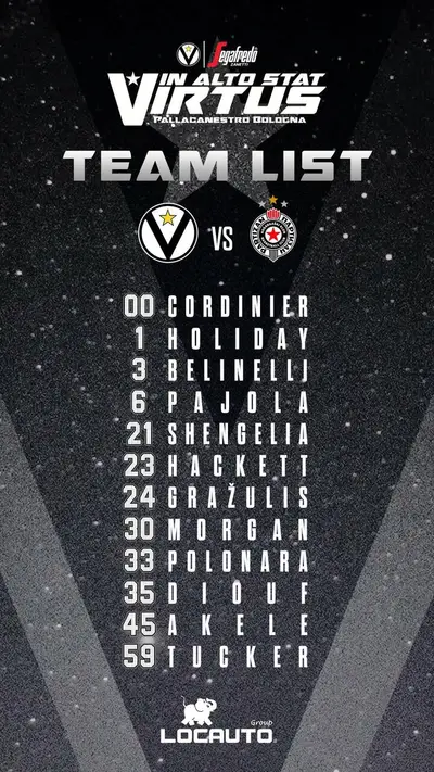 Il roster Virtus per la sfida di questa sera contro il Partizan: Justin Holiday è nei...