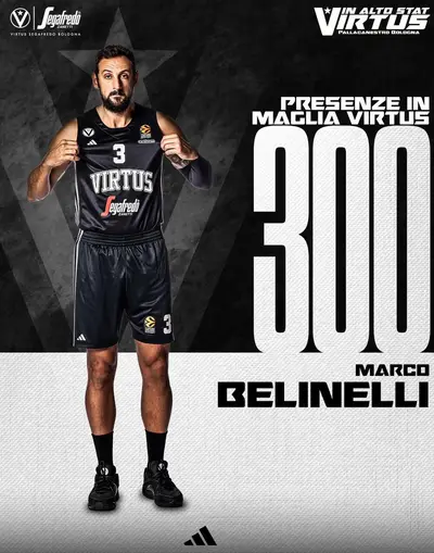 Il capitano della Virtus Marco Belinelli questa sera contro il Bayern taglia il traguardo delle 300 partite giocate in maglia...