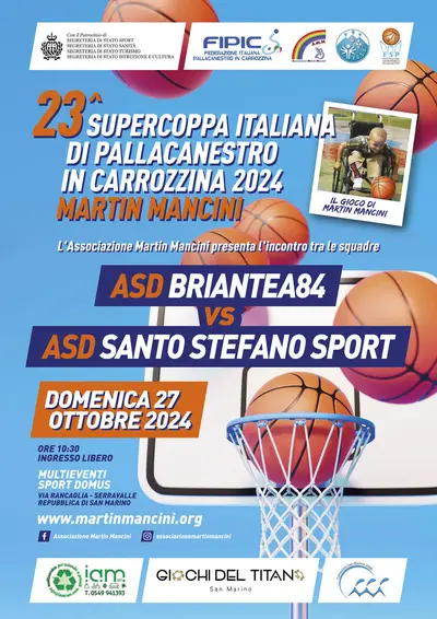 Supercoppa Martin Mancini 2024 È intitolata al giovane atleta sammarinese Martin Mancini la Supercoppa Italiana di Basket in carrozzina 2024.È...