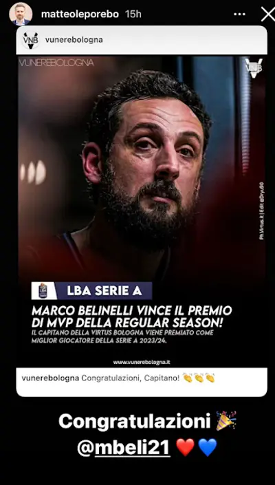 Il sindaco di Bologna Matteo Lepore, con un post sui social, ha fatto le cogratualazioni a Marco Belinelli e Pietro Aradori, nominati MVP...