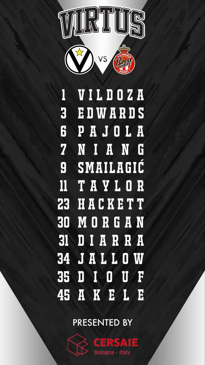 Home / Virtus Pallacanestro Bologna Il roster per Virtus - Monaco Ufficio Stampa Virtus Pallacanestro / 15 October 2025, 19:33 Twitter Facebook Whatsapp Telegram Email Virtus in campo così alle 20.30 contro il Monaco. Le decisioni dell'assemblea di Lega Basket Halftime: Virtus Bologna - AS Monaco 37-34