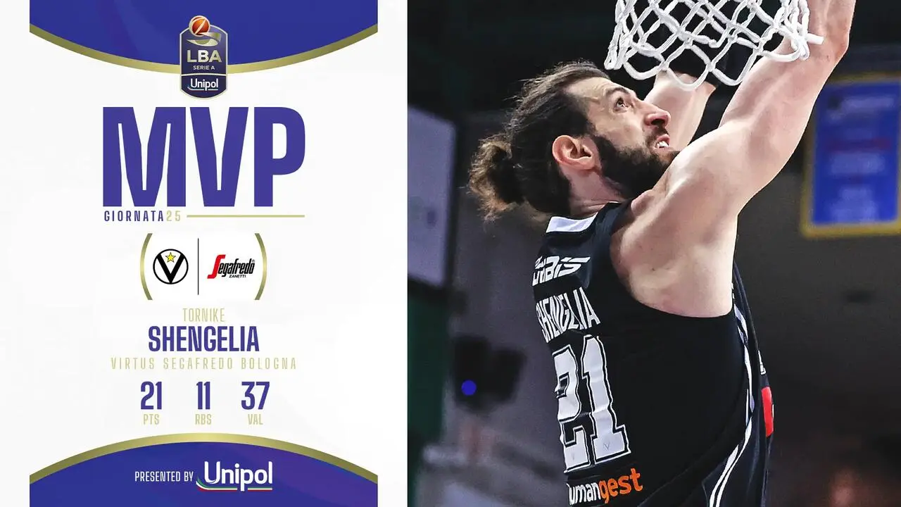 Tornik'e Shengelia (Virtus Segafredo Bologna) è stato eletto miglior giocatore del venticinquesimo turno di campionato, superando nelle votazioni i rivali Payton Terrell Willis (Vanoli Basket Cremona) e Maurice Daly Ndour (Germani Brescia)