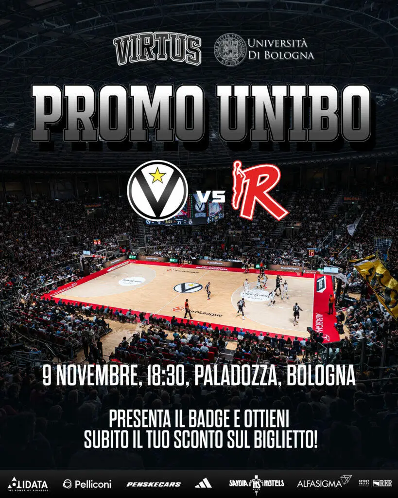 In occasione della prossima gara casalinga della Virtus Olidata Bologna al Paladozza contro Reggio Emilia, in programma domenica 9 novembre alle ore 18.30, è attiva la promozione UniBo che permette agli studenti e alle studentesse di acquistare il proprio biglietto ad un prezzo agevolato.