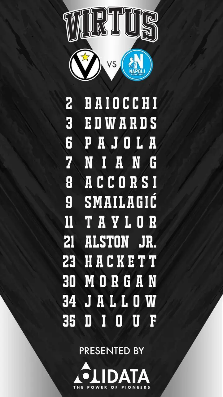 Virtus in campo così per la prima giornata di LBA contro Napoli
