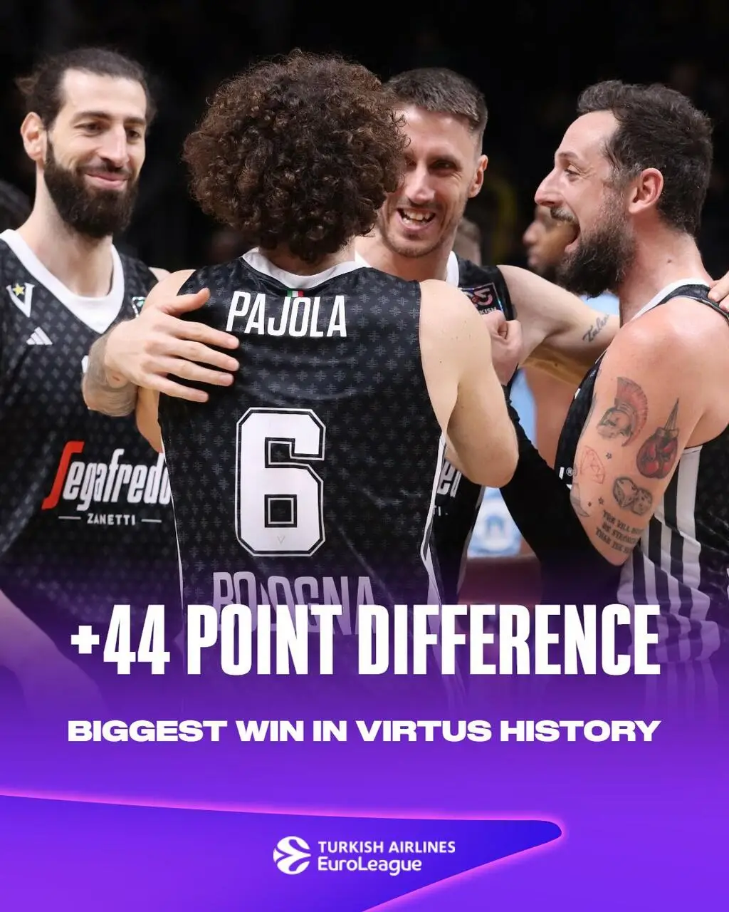 Eurolega, il +44 della Virtus è record societario. In assoluto ci fu un +55 nel 1999/00